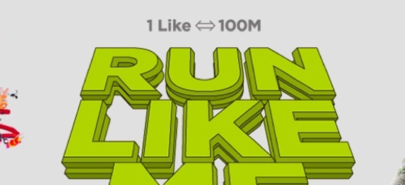 De motiverende factor van social media is op een slimme manier verwerkt in de running app van Nike+. Wie tijdens een sessie via Facebook op 'vind ik leuk' drukt zorgt ervoor dat de hardloper direct gejuich hoort via de oordopjes. Dat bracht Nike in Tokyo op het idee om een hardloper op pad te sturen die bij elke like op Facebook 100 meter ging hardlopen en dat in verschillende figuren. 100 meter, dat valt toch best mee? Het resultaat: in 30 dagen legde hij 420 kilometer af.