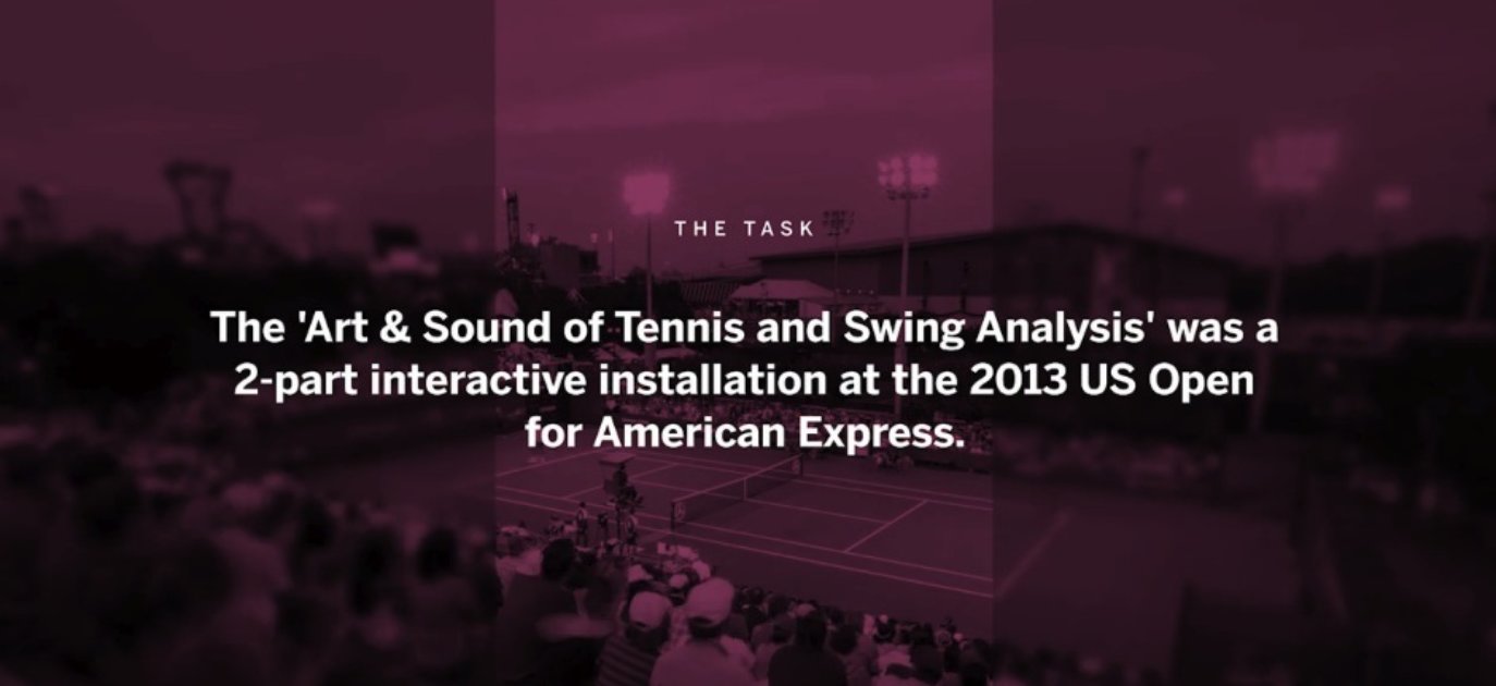 American Express had tijdens de US Open een speciale ruimte ingericht waar geluiden en bewegingen werden omgezet in vormen voor abstracte kunst. Het geluid werd opgevangen en de bewegingen werden gefotografeerd tot een digitaal schilderij. The Art & Sound of Tennis.
