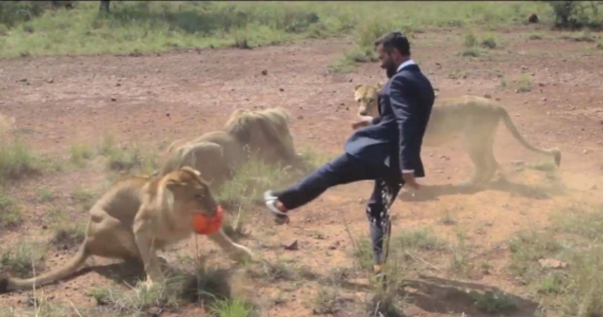 Voetballen met wilde leeuwen