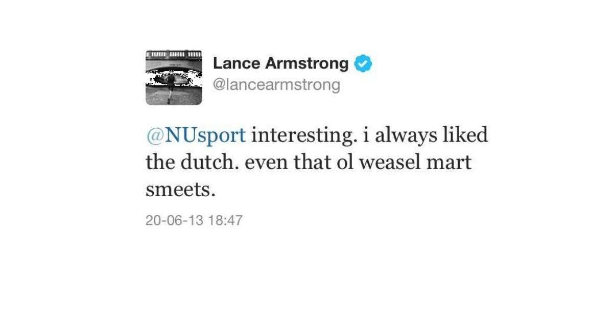 Lance Armstrong reageert met tweet op NUsport