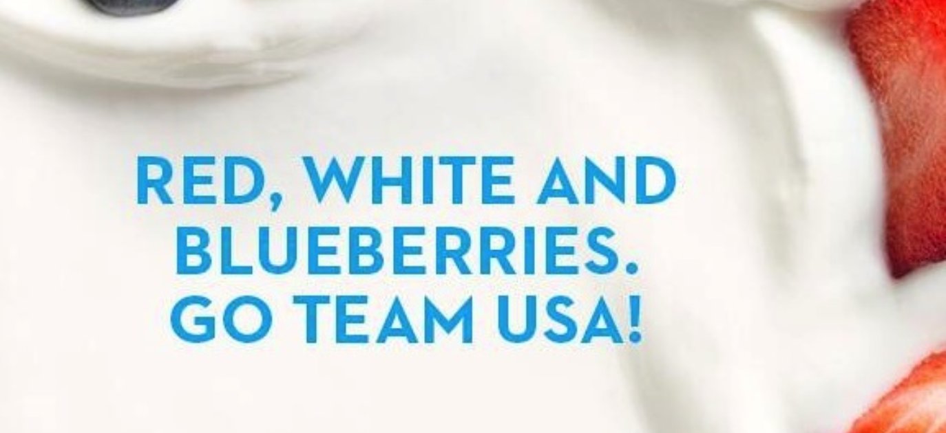 Terug naar de koelcel van het Amerikaanse vliegveld waar de 5.000 bekertjes met yoghurt nog steeds staan te wachten voor 'airborne' naar Rusland. De vooruitzichten zijn niet hoopgevend en na verschillende persberichten over en weer zit er weinig schot in de zaak. De Spelen zijn ondertussen begonnen en Chobani wil niet langer wachten. Ze duiken op Twitter om de support te tonen en gebruiken de Olympische partnership door niet alleen via de eigen Twitter @Chobani afbeeldingen te versturen maar ook via @USOlympicTeam. Eerlijk is eerlijk, een aantal subtiele inhakers geven niet alleen een goed gevoel, maar zorgen ook voor de nodige trek.