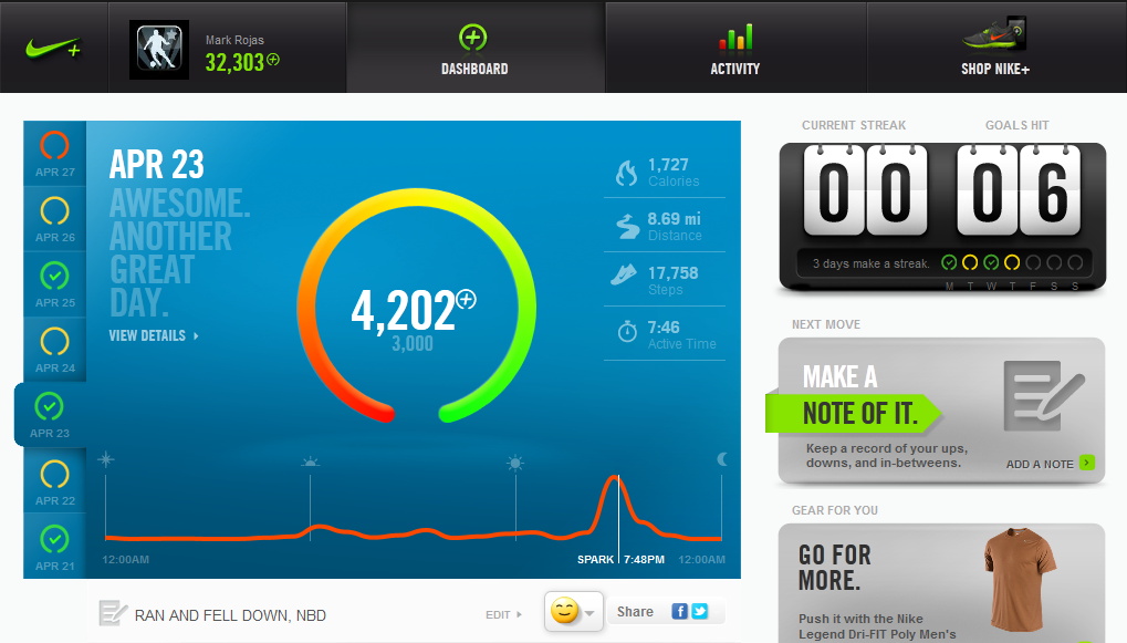 Nike Plus deed iets wat sommige sporters al veel langer deden: het kwantificeren en registreren van de sportactiviteit. Met een belangrijk verschil: het was nog nooit zo simpel (en goedkoop) om dit te doen. Nike Plus is in alles een voorloper in de (sport)marketing. Ook wat betreft het meten van activiteiten. Met de opkomst van de iPhone is wat gemeten wordt in een stroomversnelling gekomen. Niet alleen hardloopkilometers, maar ook slaap, eten, beweging en houding kunnen nu gekwantificeerd worden. En we staan echt pas aan het begin van de quantified self. Binnen vijf jaar meten en weten we alles van de mens, in eerste instantie vooral biologische (medisch of sportief) zaken, later alles: van psychologie tot DNA. Dit gaat het beeld en de waarde van de actief sportende mens compleet veranderen.