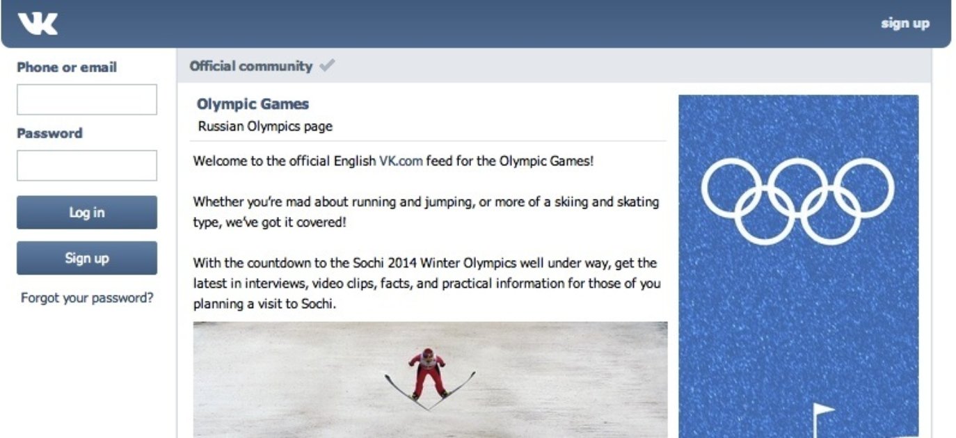 De kans is groot dat Vkontakte (VK) bij geen een belletje doet rinkelen. De Winterspelen in Rusland beloven geen Social Olympics te worden maar in Rusland wordt wel degelijk aan social media gedaan. Geen Twitter of Facebook maar Vkontakte met 49 miljoen bezoeken afgelopen juli. Dat terwijl Facebook in dezelfde periode slechts 8 miljoen bezoeken kreeg. De officiële Olympische pagina op VK heeft binnen 11 maanden bijna 2 miljoen 'likes' en polls worden geregeld met 48.000 verwelkomd. Vkontakte, het geheime social media wapen van de Russen.