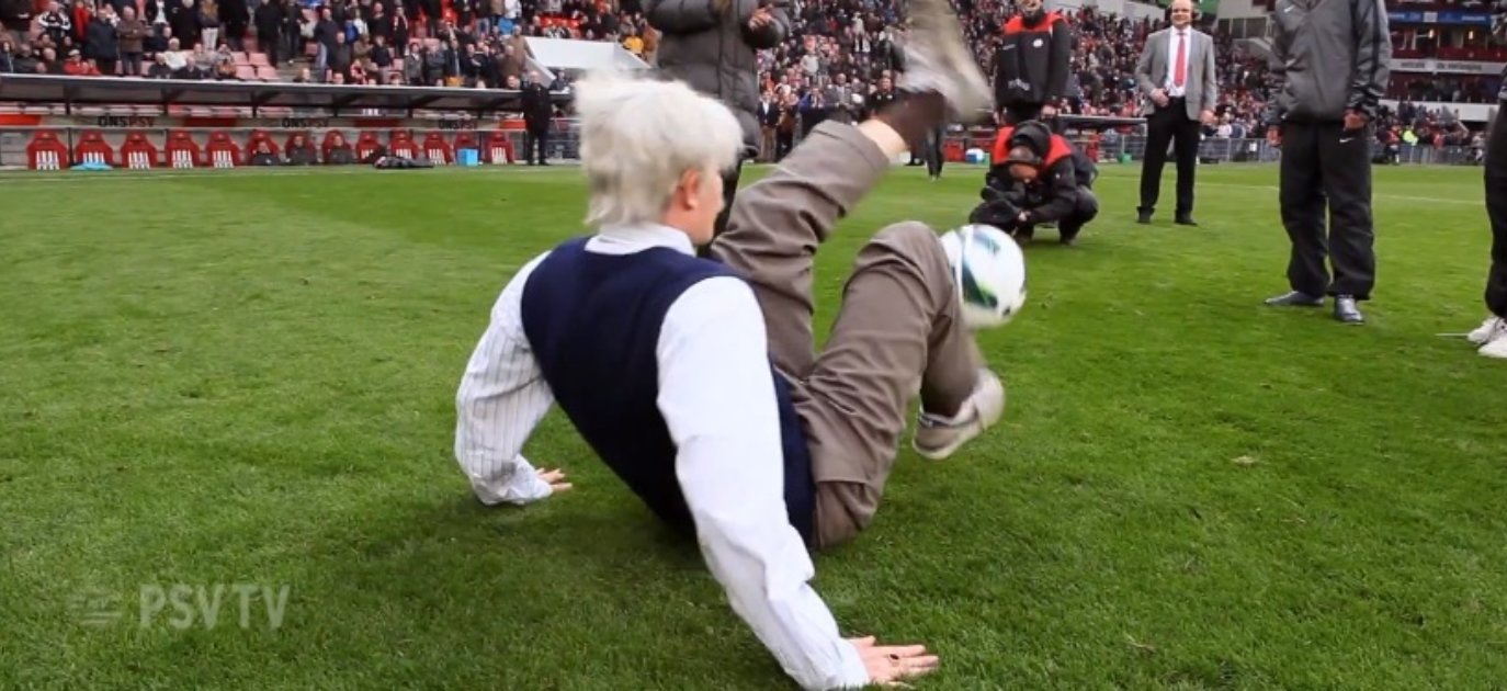 In de rust van PSV-FC Groningen (tussenstand 5-0) werden supporters verrast toen de 70-jarige Henk Jacobs als volleerde balgoochelaar het veld opkwam. Maar was deze man wel echt 70 jaar oud? In de onderstaande video (inmiddels 37.000 bekeken) het antwoord. De activatie was onderdeel van de samenwerking tussen PSV en Tzorg. Met de actie van Henk willen ze graag benadrukken dat deze mensen - ondanks hun leeftijd en het feit dat ze hulp ontvangen - er nog gewoon bij horen en meedoen.